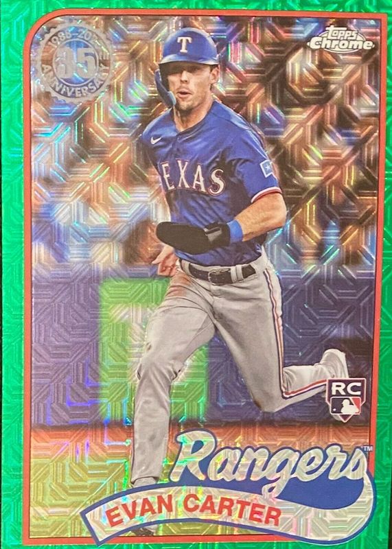 Best Prices Available For Sale of Evan Carter 2024 Topps Silver Pack #T89C-21 1989 Chrome Promo - Green Refractor (Series 1) /99