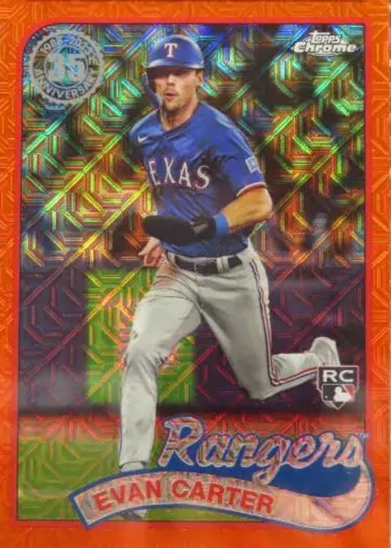 Auctions Ending Soon for Evan Carter 2024 Topps Silver Pack #T89C-21 1989 Chrome Promo - Orange Refractor (Series 1) /25 Rookie RAW