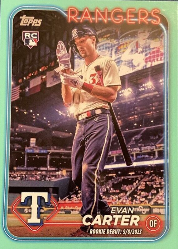 Best Prices Available For Sale of Evan Carter 2024 Topps Update #US58 Rookie Debut - Aqua