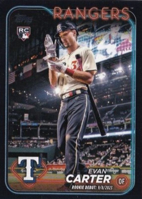 Evan Carter 2024 Topps Update Series Rookie Debut Black Border /74 #US58 Rangers