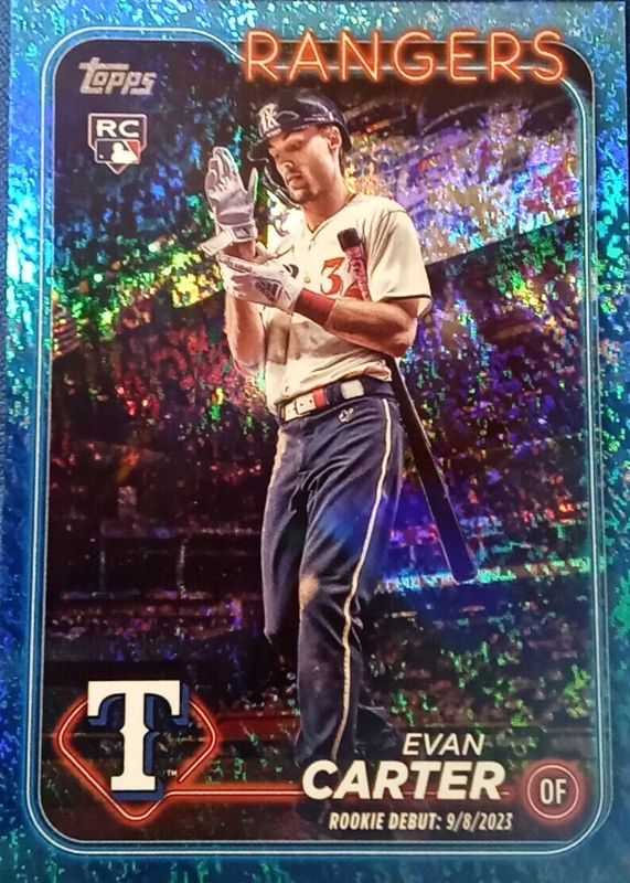 2024 Topps Update Series Evan Carter RC Rookie Debut Blue Foil SP /999 Rangers