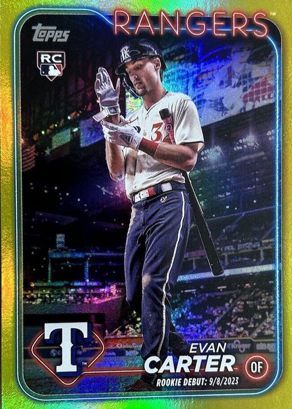 2024 Topps Update Series Yellow Foil Evan Carter Rookie Debut #US58 Rangers
