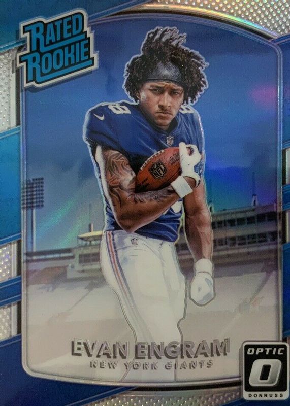 The Evan Engram 2017 Optic #180 Holo Rookie card in Raw condition has moved down -$0.79 (-39.7%) in the last 30 days and was last sold for $1.20 .