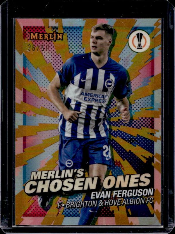 Evan Ferguson 2023 Topps Merlin Chrome UEFA Club Competitions #MC-2 Merlin's Chosen One - Gold Refractor /50 RAW Price Guide