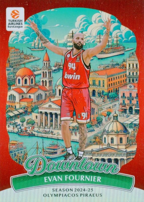 The biggest 30-day change Evan Fournier cards are 2024 Donruss EuroLeague #20 Downtown /(SSP), 2021 Illusions #11 Trophy Collection Purple /1, and 2021 Illusions #11 Trophy Collection Bronze.