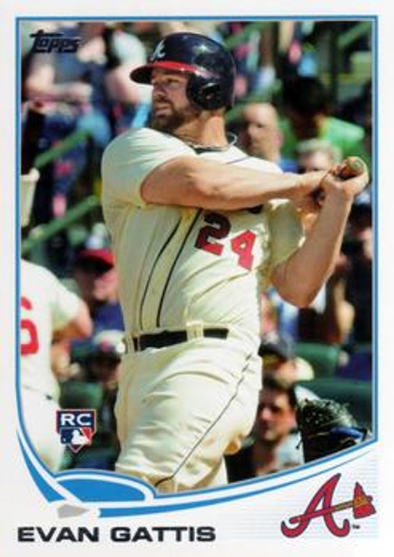 The Evan Gattis 2013 Topps #418 Base Rookie card is 1 of 20 Evan Gattis' card variations in the 2013 Topps set being tracked by Sports Card Investor, including Making Their Mark Autographs, Making Their Mark Autographs Relics /25, Blue, Emerald Foil, and Purple.
