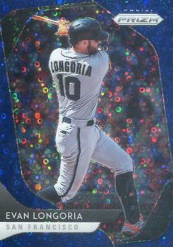 The Evan Longoria 2020 Prizm #79 Blue Donut Circles /199 card is 1 of 37 Evan Longoria's card variations in the 2020 Prizm set being tracked by Sports Card Investor, including Base, Blue, Carolina Blue, Cosmic Haze, and Green.