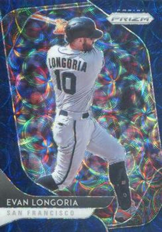 The Evan Longoria 2020 Prizm #79 Navy Blue Kaleidoscope /35 card is 1 of 37 Evan Longoria's card variations in the 2020 Prizm set being tracked by Sports Card Investor, including Base, Blue, Carolina Blue, Cosmic Haze, and Green.