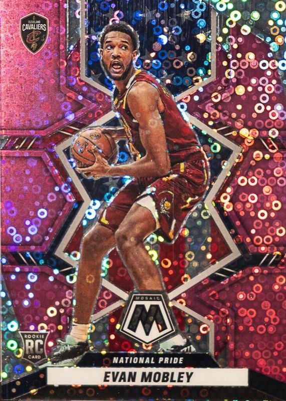The Evan Mobley 2021 Mosaic #258 National Pride - Fast Break Pink /20 Rookie card in Raw condition has not changed in price in the last 30 days and was last sold for $20.00 .