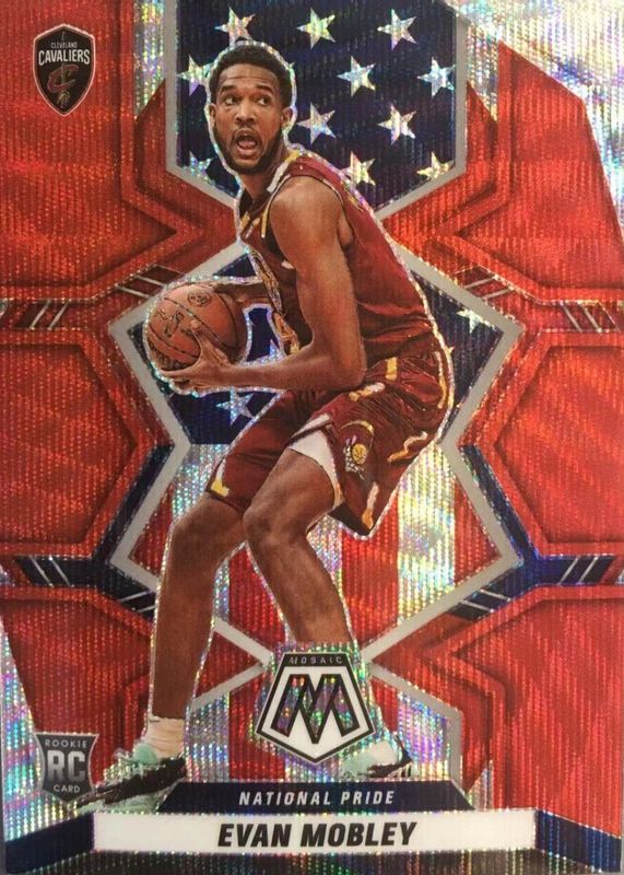 The Evan Mobley 2021 Mosaic #258 National Pride - Red Wave Rookie card in Raw condition has not changed in price in the last 30 days and was last sold for $5.24 .