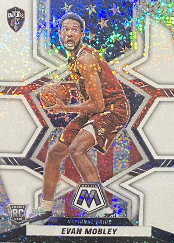 2021-22 Panini EVAN MOBLEY Rookie WHITE SPARKLE MOSAIC PRIZM National Pride #258