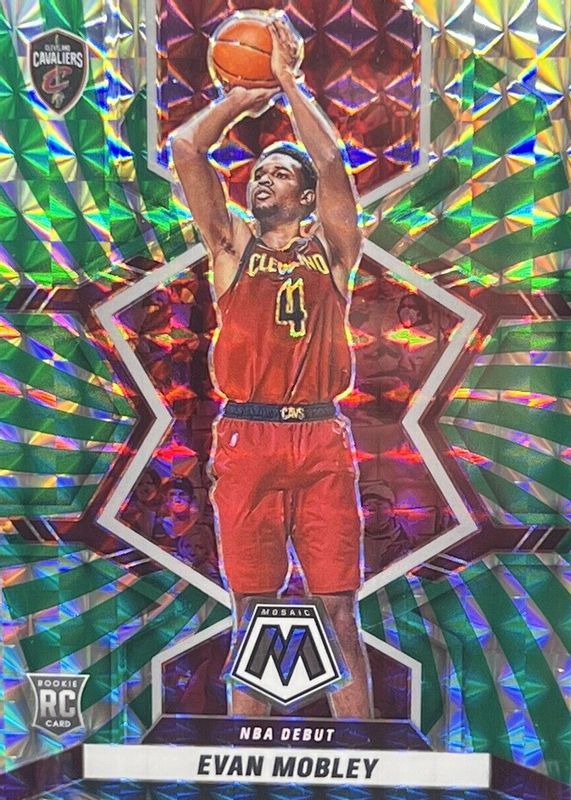 The Evan Mobley 2021 Mosaic #263 NBA Debut - Green Swirl /10 Rookie card in Raw condition has not changed in price in the last 30 days and was last sold for $250.00 .