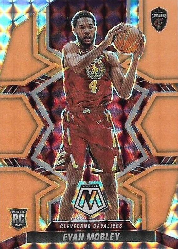 The Evan Mobley 2021 Mosaic #201 Orange Fluorescent /25 Rookie card in Raw condition has not changed in price in the last 30 days and was last sold for $213.61 .