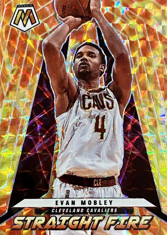 The Evan Mobley 2021 Mosaic #19 Straight Fire Rookie card in Raw condition has not changed in price in the last 30 days and was last sold for $1.35 .