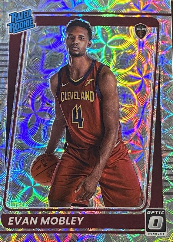 This card is 1 of 105 Evan Mobley's card variations in the 2021 Optic set being tracked by Sports Card Investor, including Base, Blue Pulsar, Blue Velocity, Checkerboard, and Choice.
