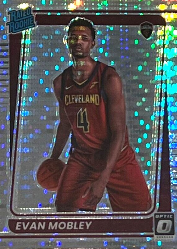 This card is 1 of 105 Evan Mobley's card variations in the 2021 Optic set being tracked by Sports Card Investor, including Base, Blue Pulsar, Blue Velocity, Checkerboard, and Choice.