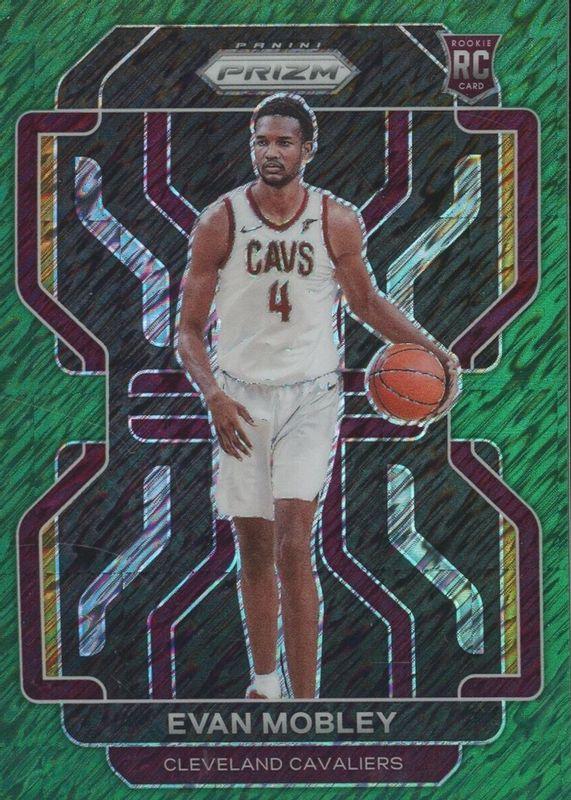 The Evan Mobley 2021 Prizm #325 Green Shimmer /5 Rookie card in Raw condition has not changed in price in the last 30 days and was last sold for $461.00 .