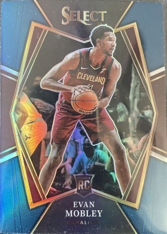 EVAN MOBLEY 2021-22 Panini Select Premier Level Blue Prizm Rookie RC CAVS