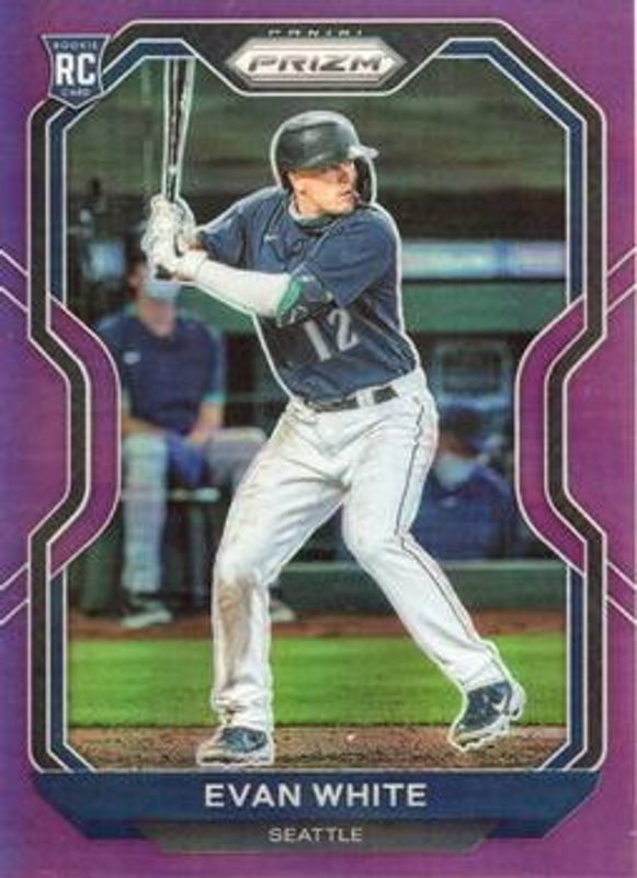 The Evan White 2021 Prizm #89 Pink Rookie card is 1 of 75 Evan White's card variations in the 2021 Prizm set being tracked by Sports Card Investor, including Base, Blue, Blue Velocity, Carolina Blue, and Cosmic Haze.