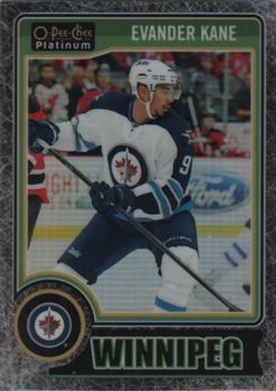 The Evander Kane 2014 O-Pee-Chee Platinum #50 Black Ice /25 card is 1 of 17 Evander Kane's card variations in the 2014 O-Pee-Chee Platinum set being tracked by Sports Card Investor, including Base, Platinum Traxx, Rainbow, White Ice /199, and Red Prism /135.