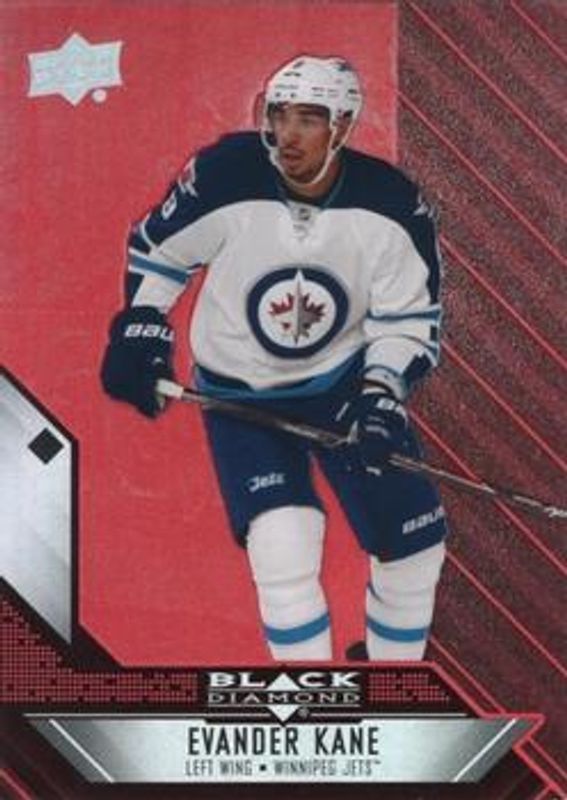 The Evander Kane 2014 Upper Deck Black Diamond #14 Ruby /50 card is 1 of 5 Evander Kane's card variations in the 2014 Upper Deck Black Diamond set being tracked by Sports Card Investor, including Base, Orange, Emerald /10, and Sapphire /1.