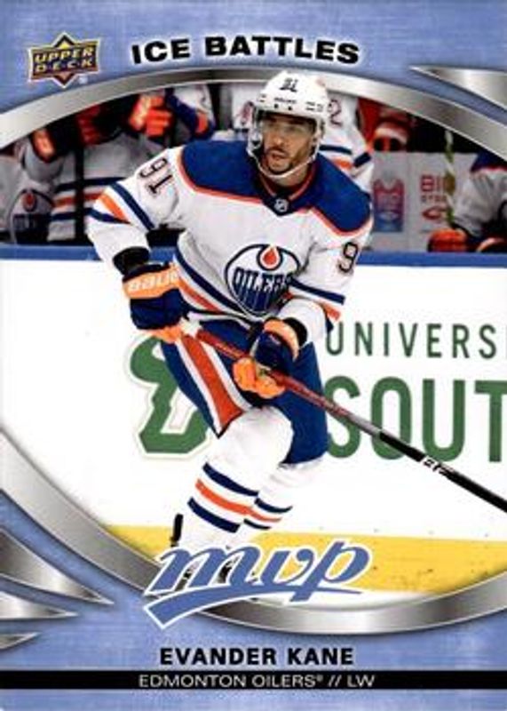 The Evander Kane 2023 Upper Deck MVP #142 Ice Battles card is 1 of 17 Evander Kane's card variations in the 2023 Upper Deck MVP set being tracked by Sports Card Investor, including Base, Gold Script, Silver Script, Super Script /25, and Super Script Black /5.