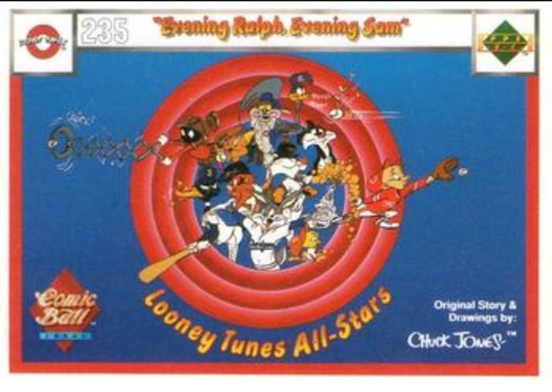 The Evening Ralph, Evening Sam 1990 Upper Deck Comic Ball #235-/-250 Base card is 1 of 13 Evening Ralph, Evening Sam's card variations in the 1990 Upper Deck Comic Ball set being tracked by Sports Card Investor, including #236-/-251 Base, #237-/-252 Base, #238-/-247 Base, #239-/-248 Base, and #240-/-249 Base.