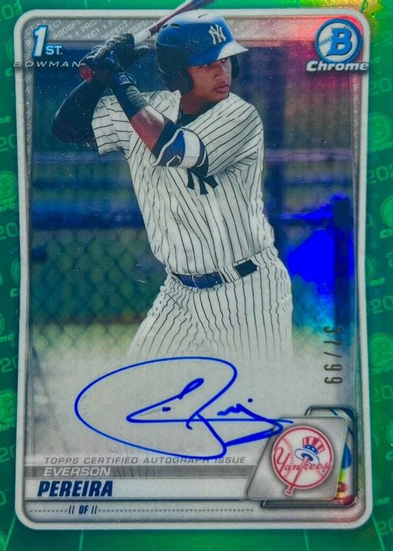 2020 Bowman Chrome 1st Everson Pereira Auto Green Refractor 77/99 Yankees CPA-EP