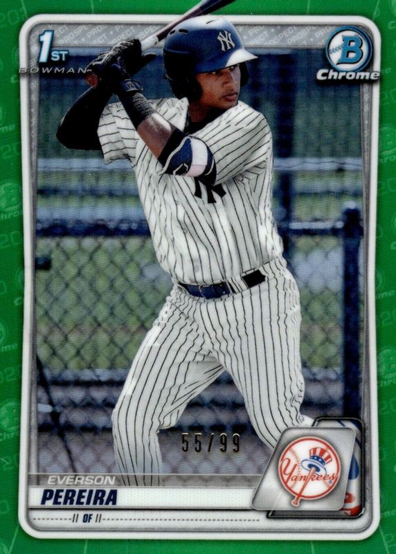 Best Prices Available For Sale of Everson Pereira 2020 Bowman #BCP-51 Chrome Prospects - Green Refractor /99 (1st)