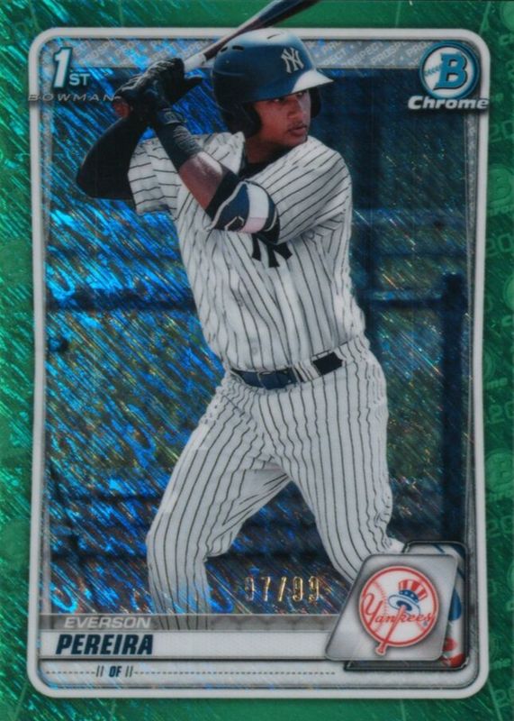 Everson Pereira 2020 Bowman #BCP-51 Chrome Prospects - Green Shimmer Refractor /99 (1st) RAW Price Guide