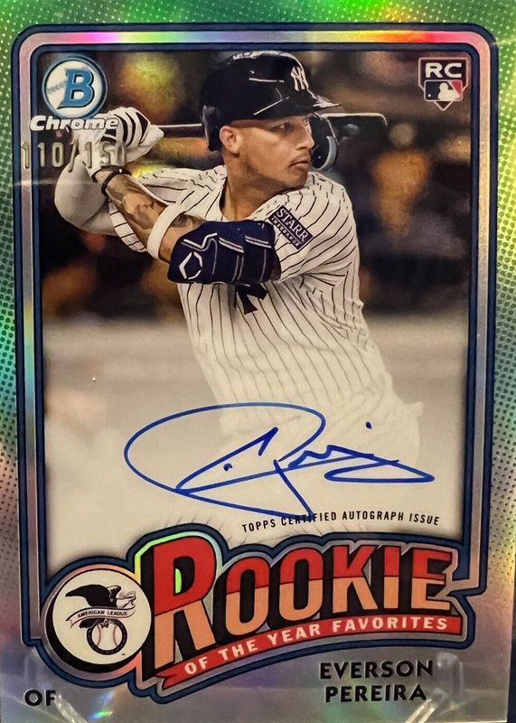 2024 Bowman Chrome ROY Favorites Everson Pereira Yankees RC Rookie AUTO /150
