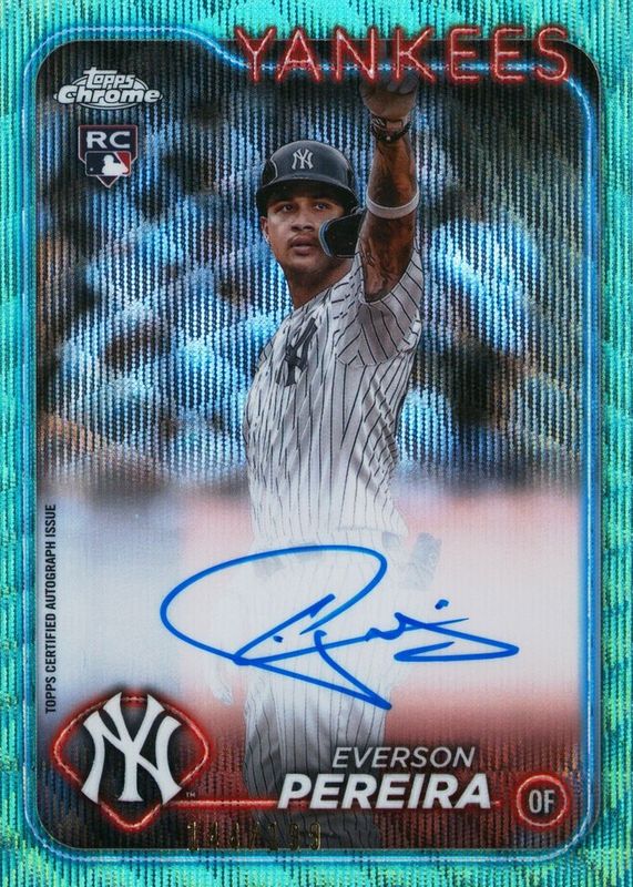 2024 Topps Chrome Everson Pereira NY Yankees Aqua Wave /199 Rookie Auto #RA-EP