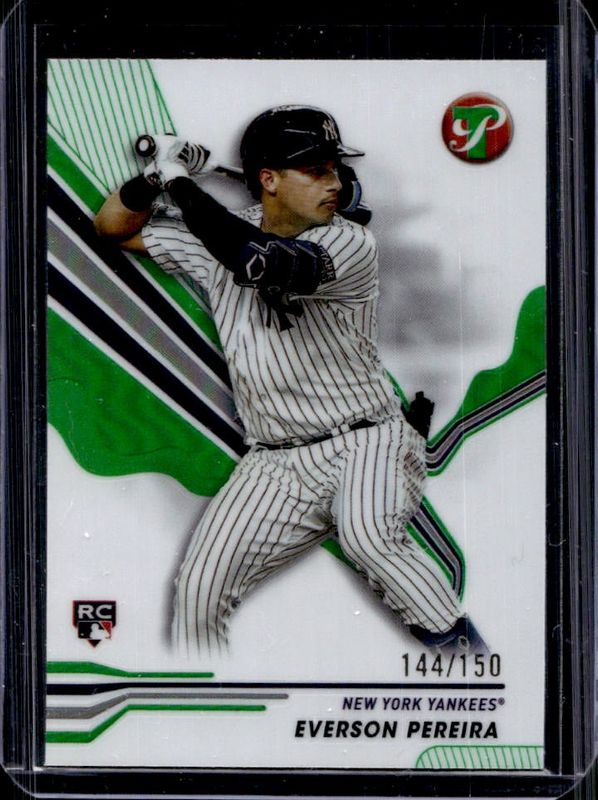The Everson Pereira 2024 Topps Pristine #103 Green Refractor /150 Rookie card is 1 of 35 Everson Pereira's card variations in the 2024 Topps Pristine set being tracked by Sports Card Investor, including Base, Pristine Refractor, Refractor, Pristine Purple Refractor /99, and Purple Refractor /99.