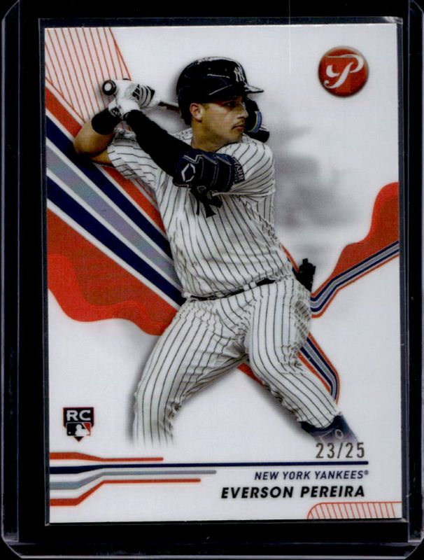 The Everson Pereira 2024 Topps Pristine #103 Orange Refractor /25 Rookie card is 1 of 35 Everson Pereira's card variations in the 2024 Topps Pristine set being tracked by Sports Card Investor, including Base, Pristine Refractor, Refractor, Green Refractor /150, and Pristine Purple Refractor /99.