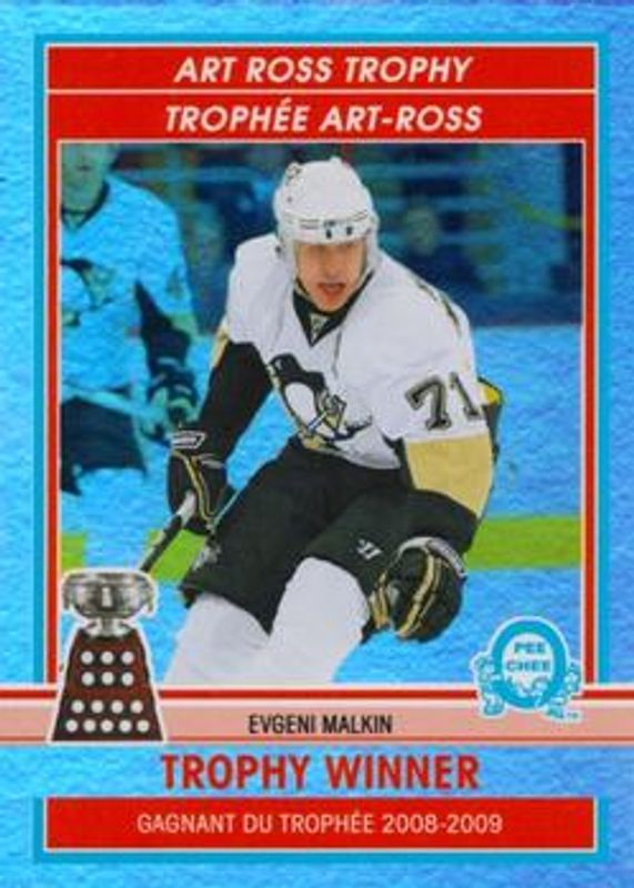 The Evgeni Malkin 2009 O-Pee-Chee #TW10 Trophy Winners card is 1 of 14 Evgeni Malkin's card variations in the 2009 O-Pee-Chee set being tracked by Sports Card Investor, including Base, Rainbow, Retro, Retro Blank Back, and Retro Rainbow /100.