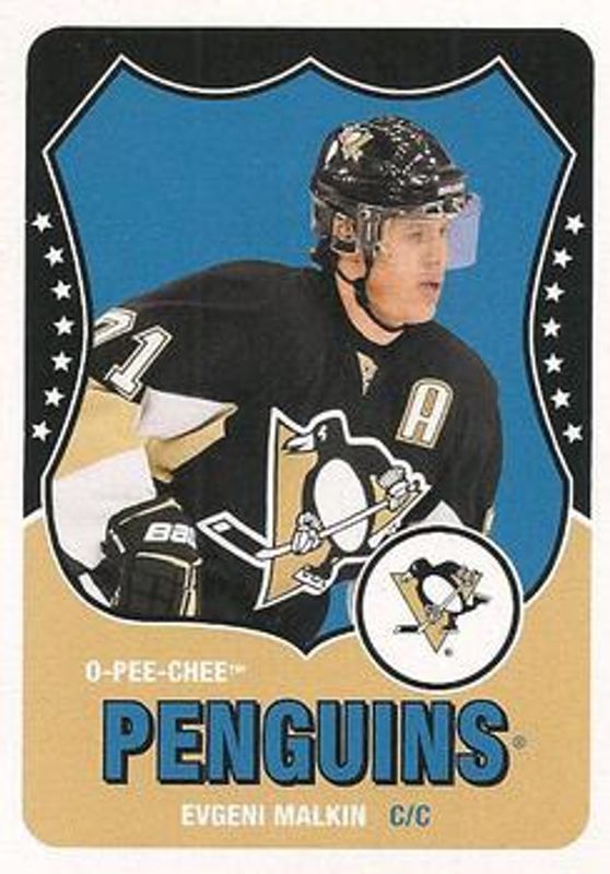 The Evgeni Malkin 2010 O-Pee-Chee #391 Retro card is 1 of 6 Evgeni Malkin's card variations in the 2010 O-Pee-Chee set being tracked by Sports Card Investor, including Base, Retro Blank Back, Retro Rainbow, Retro Black Rainbow /100, and Retro Box Bottoms.