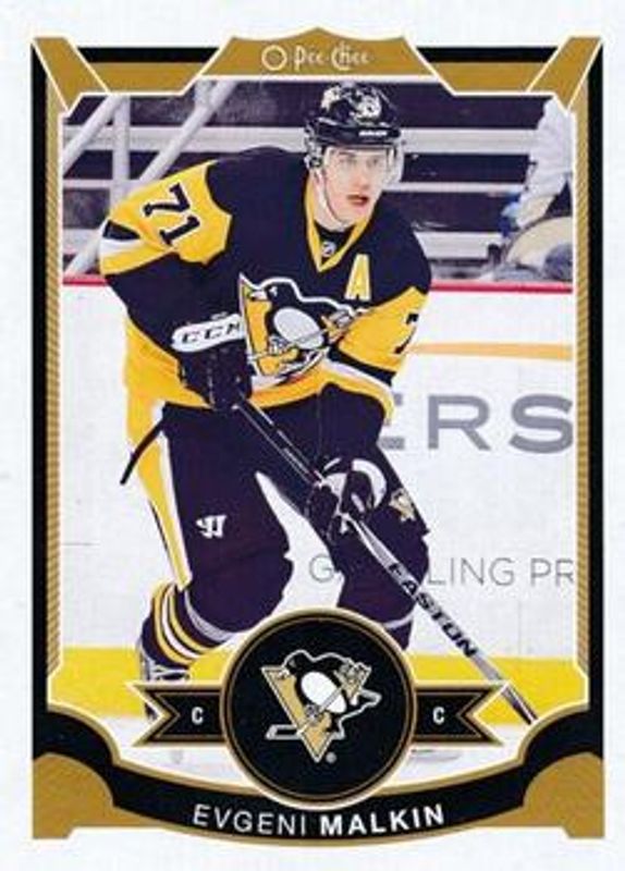 The Evgeni Malkin 2015 O-Pee-Chee #50 Base card is 1 of 11 Evgeni Malkin's card variations in the 2015 O-Pee-Chee set being tracked by Sports Card Investor, including Rainbow, Red, Retro, Rainbow Black /100, and Blaster Box Bottoms.