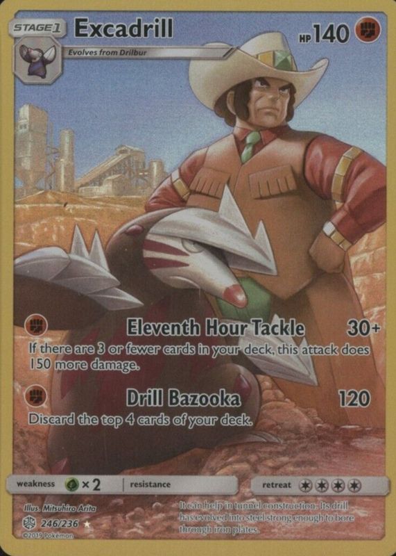 The Excadrill 2019 Sun & Moon: Cosmic Eclipse #246/236 Holo (Secret) card in Raw TCG (Near Mint) condition has moved down -$0.09 (-1.8%) in the last 30 days and was last sold for $4.94 .
