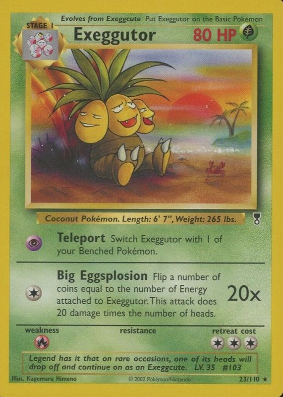 The Exeggutor 2002 Legendary Collection #23 Base card in Raw TCG (Near Mint) condition has not changed in price in the last 30 days and was last sold for $0.99 .