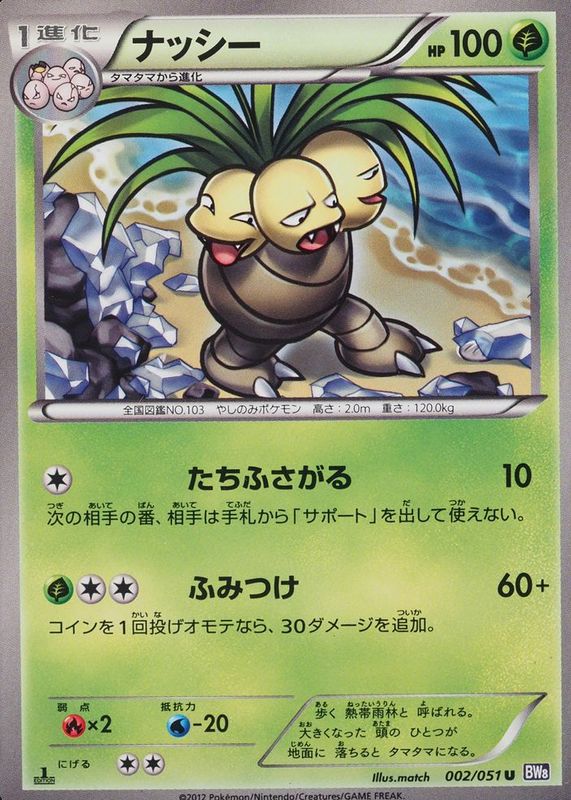 Exeggutor 2012 Japanese Black & White: Spiral Force #002/051 1st Edition RAW TCG (NEAR MINT) Price Guide