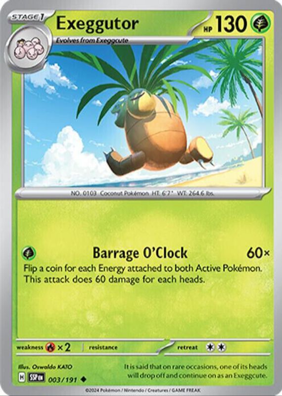 Exeggutor 2024 Scarlet & Violet: Surging Sparks #003/191 Base RAW TCG (LIGHTLY PLAYED) Price Guide