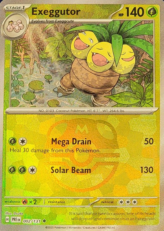 Exeggutor 2025 Scarlet & Violet: Prismatic Evolutions #002/131 Master Ball Reverse Holo RAW TCG (NEAR MINT) Price Guide