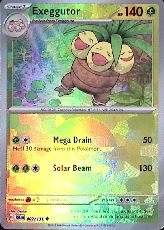 Exeggutor 2025 Scarlet & Violet: Prismatic Evolutions #002/131 Poke Ball Reverse Holo RAW TCG (LIGHTLY PLAYED) Price Guide