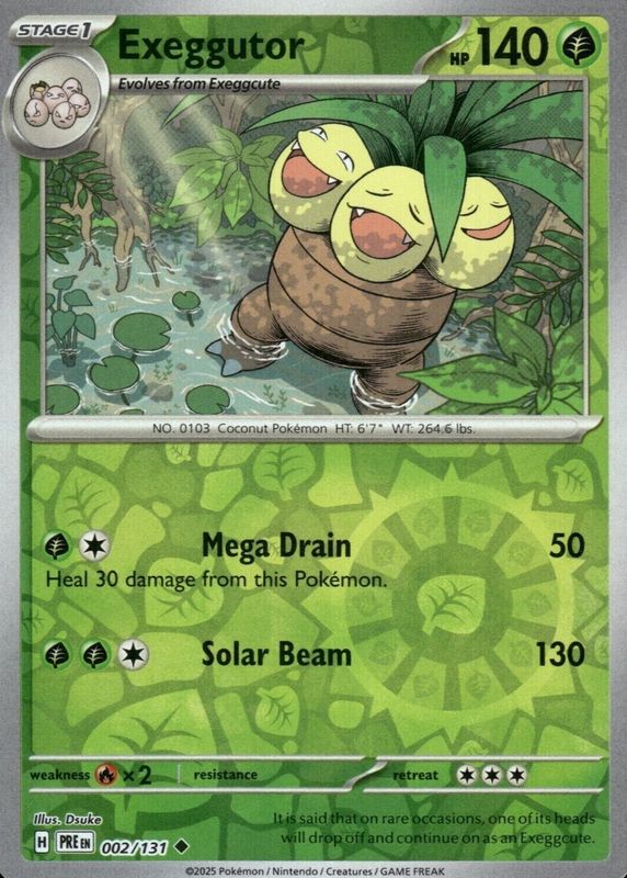 Exeggutor 2025 Scarlet & Violet: Prismatic Evolutions #002/131 Reverse Holo RAW TCG (NEAR MINT) Price Guide