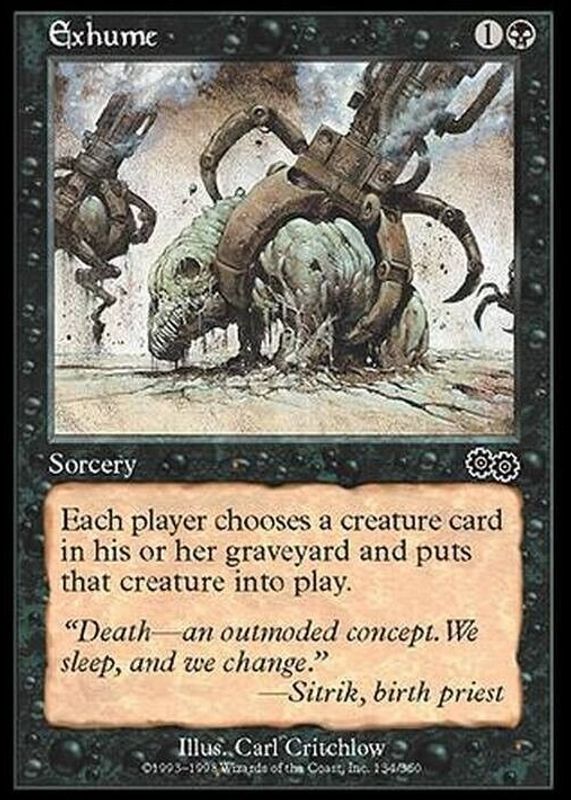 The Exhume 1998 Urza's Saga #134 Base card in Raw TCG (Lightly Played) condition has moved up $0.16 (+4.5%) in the last 30 days and was last sold for $3.70 .