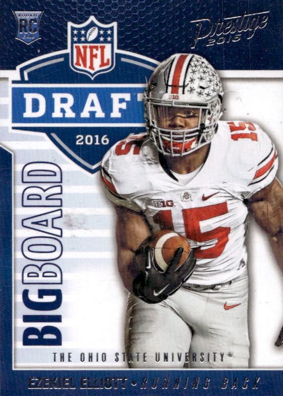 The Ezekiel Elliott 2016 Prestige #3 Draft Big Board Rookie card in Raw condition has moved up $0.01 (+1.0%) in the last 30 days and was last sold for $1.00 .