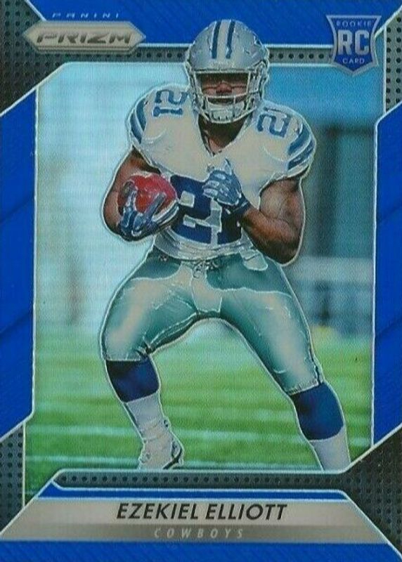 The Ezekiel Elliott 2016 Prizm #238 Blue /(SSP) Rookie card in Raw condition has not changed in price in the last 30 days and was last sold for $63.00 .
