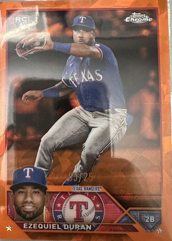 2023 Topps Chrome Sapphire Ezequiel Duran Refractor Orange RC #/25 Rangers