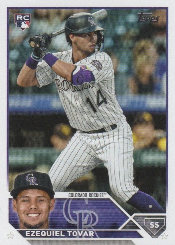 This card is 1 of 20 Ezequiel Tovar's card variations in the 2023 Topps set being tracked by Sports Card Investor, including Base, Gold Foil, Rainbow Foil, Royal Blue, and Gold /2023.