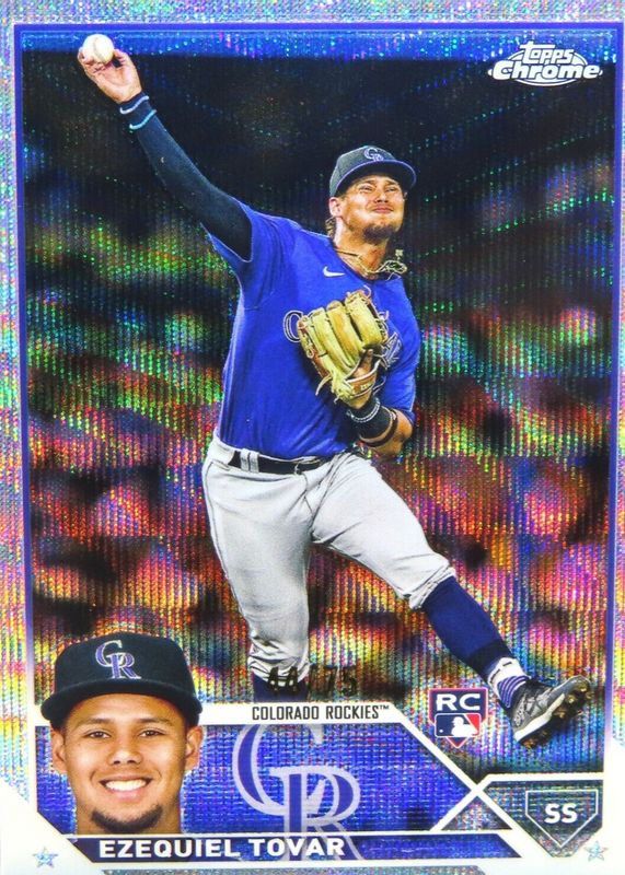 2023 Topps Chrome Ezequiel Tovar Blue Wave Refractor RC /75 Rockies Rookie #106
